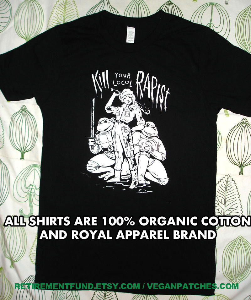 The best message I can think of in terms of dealing with sexual violence, this shirt was a very cathartic image to draw. It also comes in small patch form and backpatch form as well.